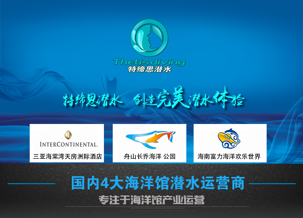 特締思潛水是一家集潛水培訓(xùn)、潛水器材銷(xiāo)售、海洋館運(yùn)營(yíng)管理等為一體的管理公司!目前公司主要在三亞海棠灣天房洲際度假酒店、海南陵水富力海洋歡樂(lè)世界、舟山長(zhǎng)喬海洋公園負(fù)責(zé)潛水項(xiàng)目的運(yùn)營(yíng)。PADI5星潛水中心和SSI潛水中心,德國(guó)“BAUER寶華”空壓機(jī)、韓國(guó)SEAWALKER海底漫步、美國(guó)SCUBAPRO和意大利MARES和CRESSI等國(guó)際品牌潛水器材銷(xiāo)售代理。